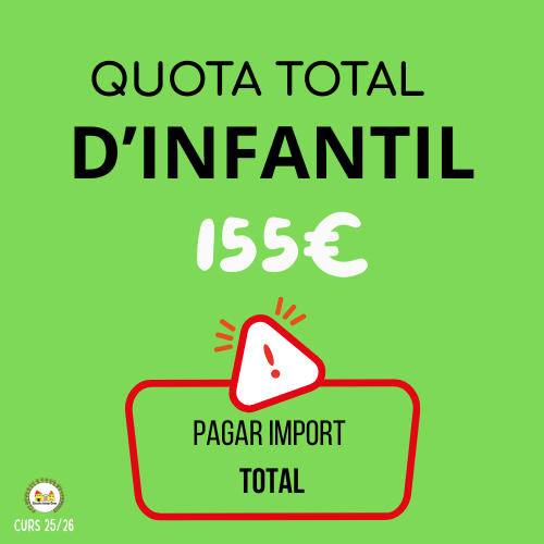Inici / Quotes / QUOTA TOTAL INFANTIL QUOTA TOTAL INFANTIL€155,00 quantitat de QUOTA TOTAL INFANTIL Afegeix a la cistella Categoria: Quotes Productes relacionats QUOTA TOTAL GRANS MONOPARENTAL/NOMBROSES €190,00 Afegeix a la cistella QUOTA TOTAL MITJANS CEDINT VAL ESCOLAR MONOPARENTAL/NOMBROSES €102,00 Afegeix a la cistella QUOTA 2 INFANTIL €60,00 Afegeix a la cistella QUOTA TOTAL GRANS CEDINT VAL ESCOLAR MONOPARENTAL/NOMBROSES €130,00 Afegeix a la cistella